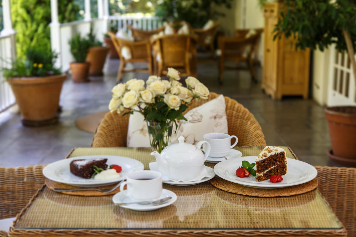 La cuina del país serveix dinars i sopars lleugers. Els àpats tradicionals es poden gaudir a la nostra piscina, jardins, terrasses impressionants amb vistes als jardins o en els nostres amplis menjadors amb patis tranquils. A l'hivern us podem reservar una taula a prop de la llar de foc.