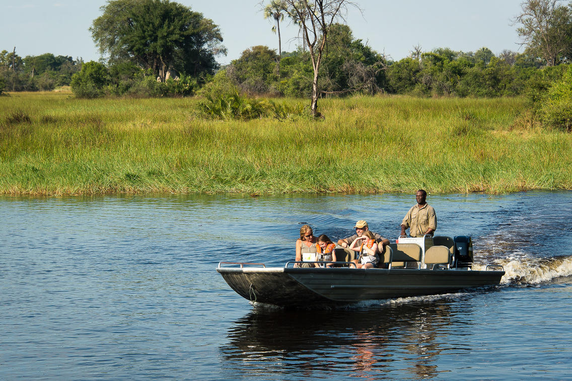 Eine Bootsfahrt entlang der ruhigen Gewässer des Okavango-Deltas ist eine weitere idyllische Form der Beobachtung von Wassertieren. Bringen Sie Ihre Kamera mit, um den Reichtum des Lebens einzufangen, von Fröschen über Wasservögel bis hin zu wunderschönen Seerosen.