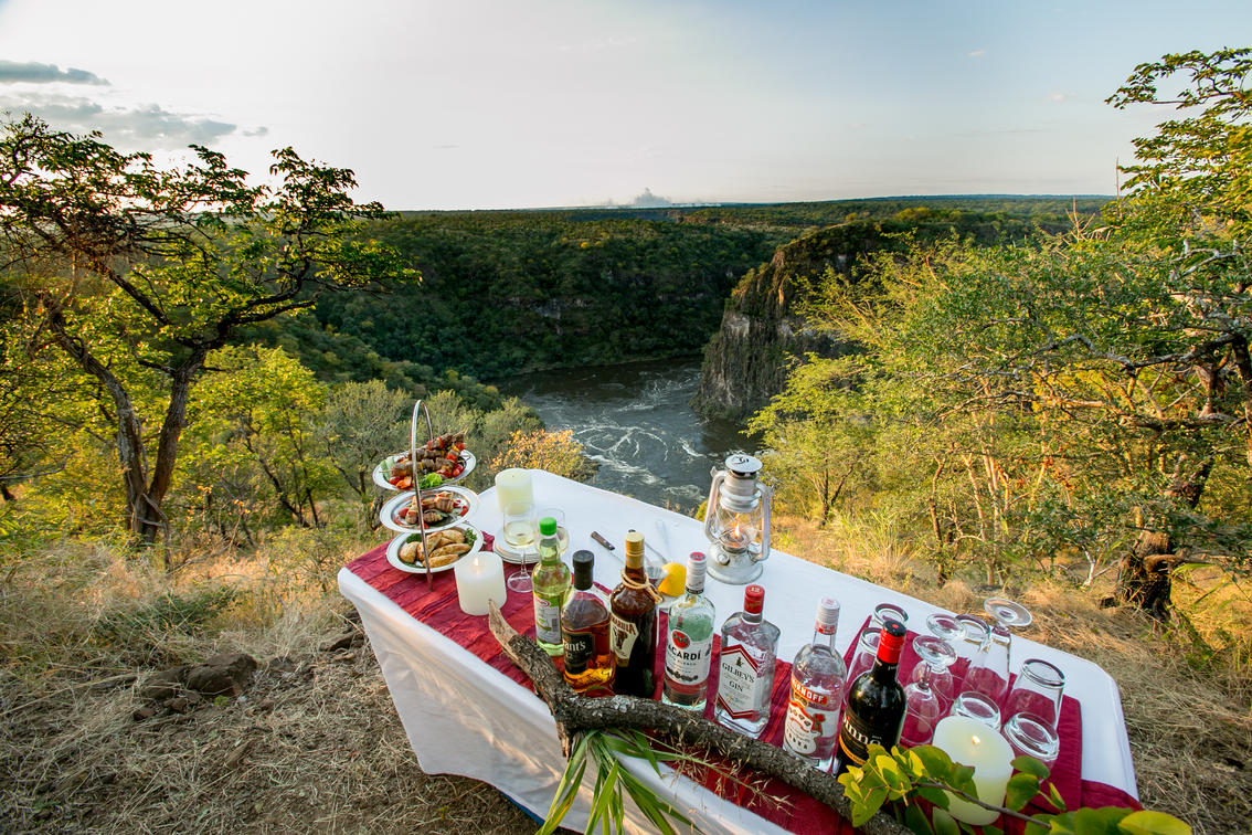 Gönnen Sie sich eine Auswahl an Cocktails und Kanapees am Rand der Batoka-Schlucht, wo die Sambezi Rapids 120 Meter darunter toben. Dieses versteckte Juwel ist der perfekte Ort, um einen Sundowner zu genießen und ist exklusiv für Gäste im The Elephant Camp gedacht.