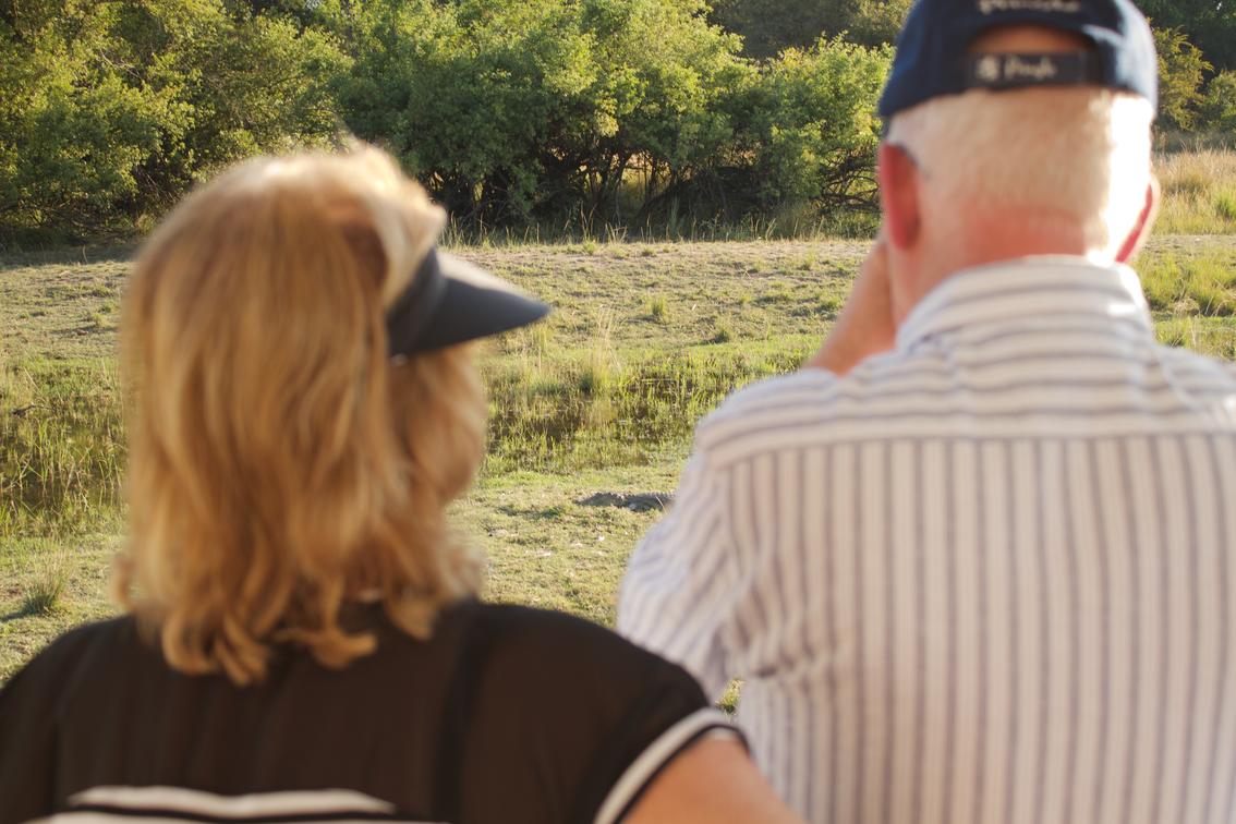 Gäste blicken auf ein Krokodil