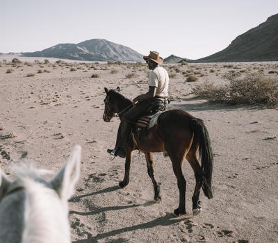 ‚Stars of the Namib‘ with five stages of riding and two overnight stays (Namib Outpost / tented camp) offers a very intense experience for horse lovers, coupled with the exploration of nature in the Namib Desert. Riding to the next destination is done during the cooler time of the day while enjoying some lunch and downtime during the heat of the day.
