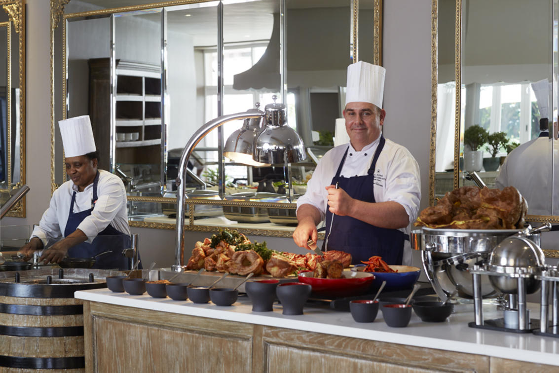 Be escorted by one of the Mount Nelson chefs to the heart of the hotel kitchen. Behind the hub of activity, an intimate dining space awaits. And so begins a wonderfully immersive experience, as chefs serve a succession of dishes from canapés and breads to mains and desserts.
