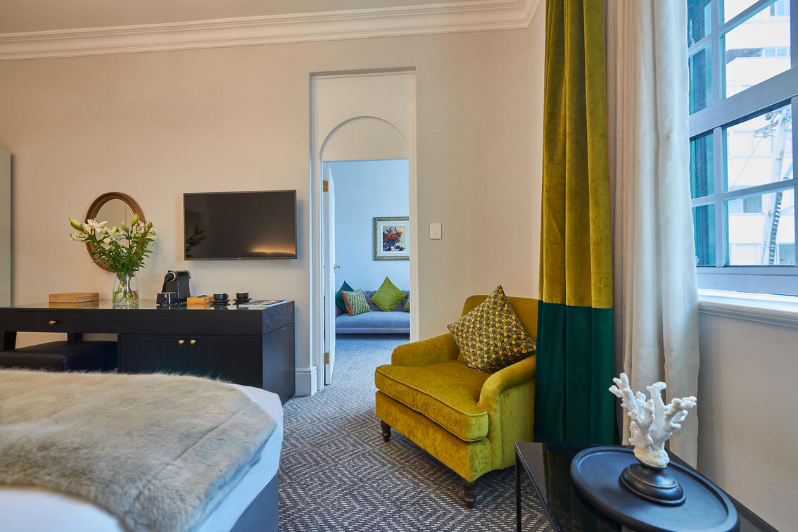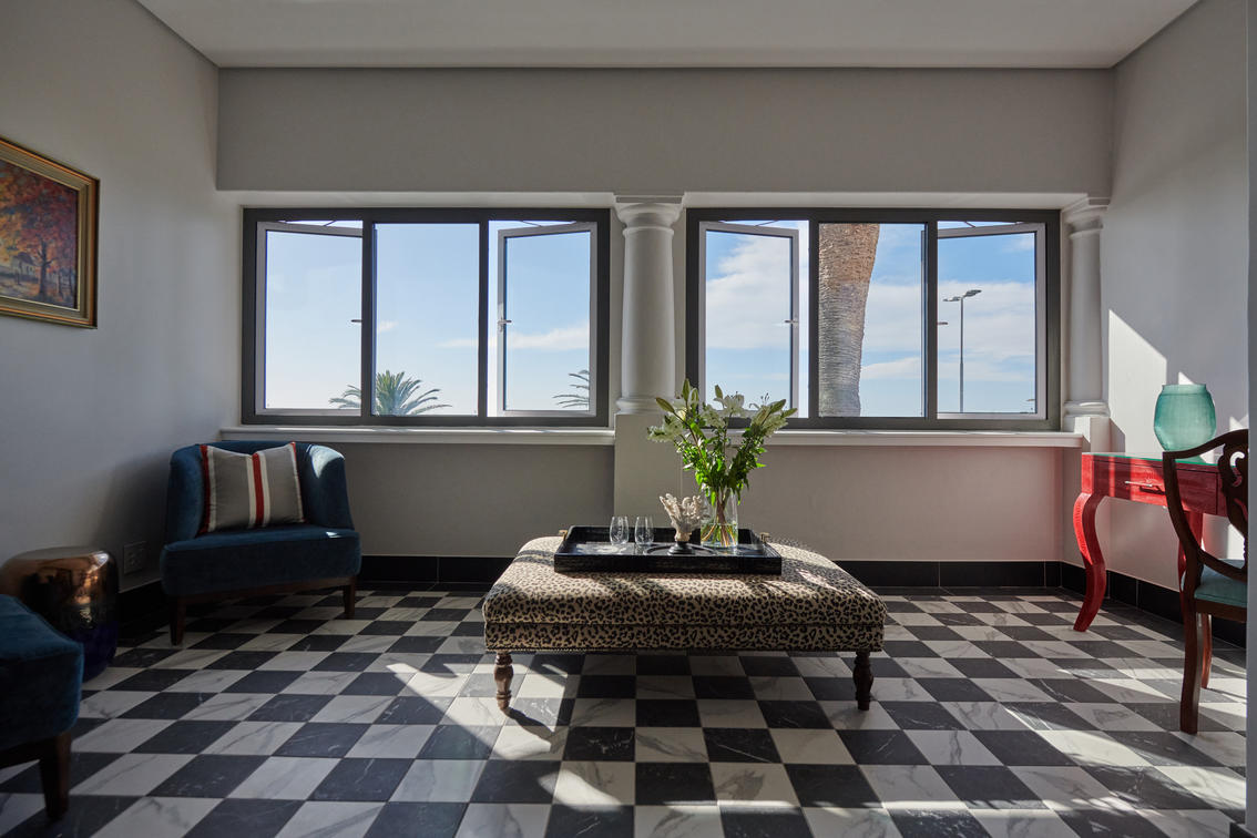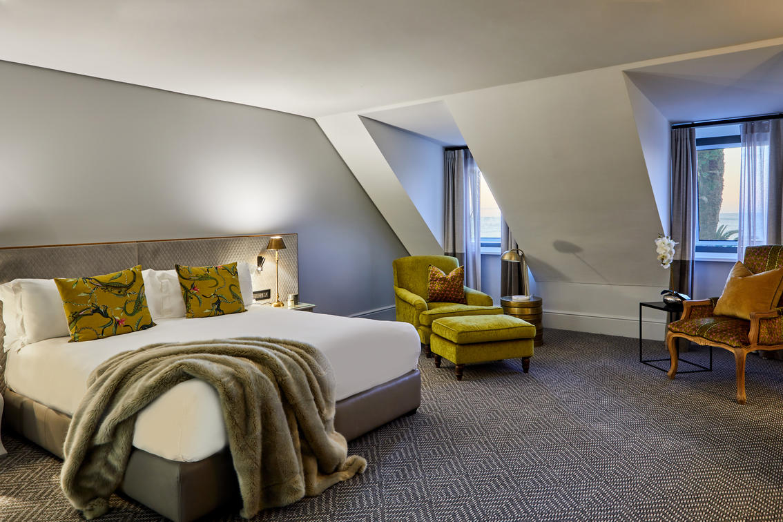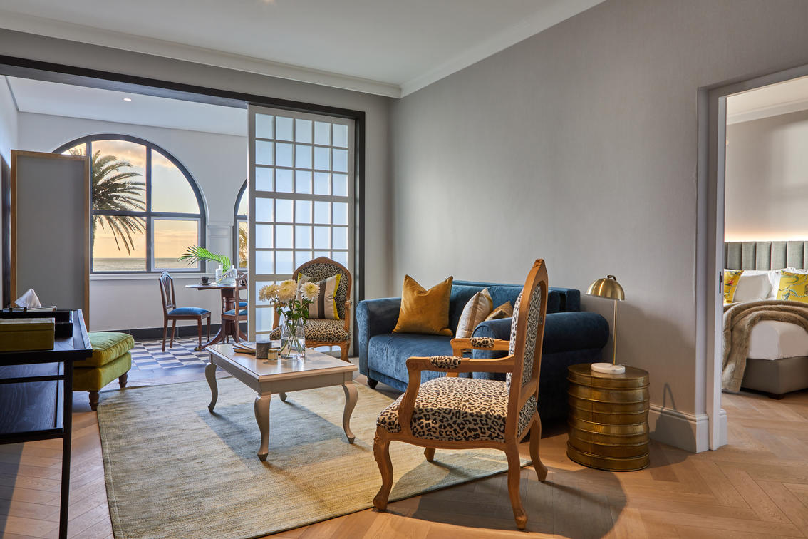 The 14 Junior Sea-Facing Suites are also comfortably spacious, measuring between 25 and 45 m², and feature views of the expansive Atlantic Ocean beyond the Sea Point Promenade.