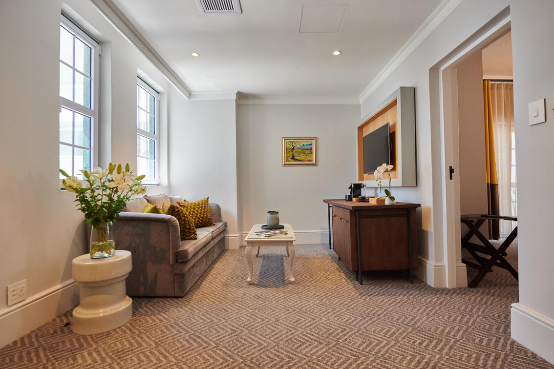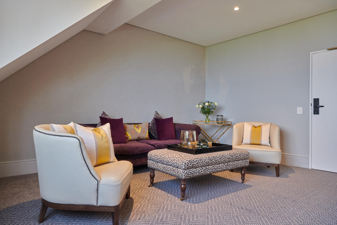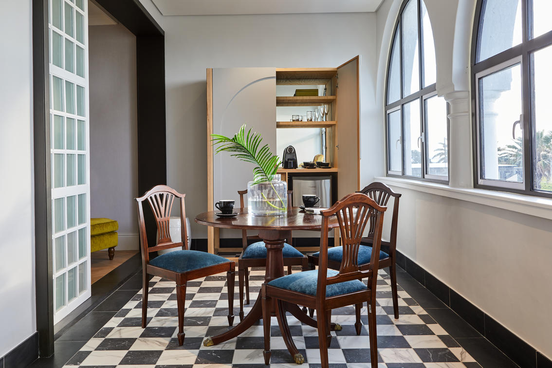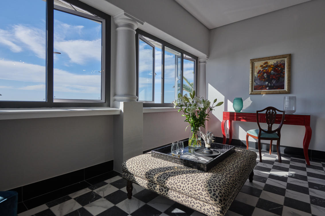 The 14 Junior Sea-Facing Suites are also comfortably spacious, measuring between 25 and 45 m², and feature views of the expansive Atlantic Ocean beyond the Sea Point Promenade.