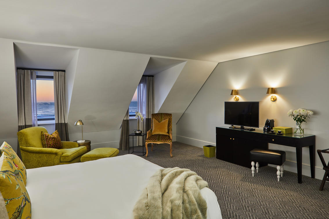 The Loft-Style Junior Sea-Facing Suites feature an open-plan, en-suite bedroom and lounge and offer a pleasant amount of space, ranging from 25 to 45 m². All of these suites present views of the Atlantic Ocean.
