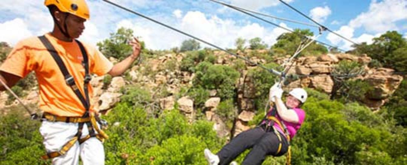 The Tsitsikamma Canopy Tour© is a unique eco-wilderness adventure that takes place in the magnificent Tsitsikamma indigenous rainforest. The first of its kind in Africa, the canopy tour involves traversing from one platform to another along a steel cable suspended up to 30 meters above the forest floor... Most platforms are located in giant Outeniqua Yellowwood trees. The scenery and bird life is spectacular and professional guides provide interesting facts about the forest ecology during the 2½ to 3 hours. The concept of guiding people through the upper canopy of a rainforest originated in Costa Rica, where adventurous biologists devised new methods for accessing the forest canopy in order to conduct research on the undiscovered canopy ecosystem. The idea soon developed into a breathtaking form of eco-tourism which allowed people to enter and experience a previously inaccessible natural environment. Construction of the Tsitsikamma Canopy Tour© has been done in accordance with strict civil engineering standards. The system was designed and created by an adventurous civil engineer who constructed a similar canopy tour in Costa Rica. Concept to completion took fourteen and a half months. The tour begins with a detailed safety briefing followed by a 'kitting up' session where full body harness, pulleys and climbing equipment is issued and checked. A short drive into the Tsitsikamma forest and it is time to monkey around! From the start on the launch platform a new world unfolds as one gently glides on a steel cable to the first tree platform. All groups are escorted through the forest canopy by a lead guide and a follow guide to ensure your safety as you slide from tree to tree. The platforms, built high up in the giant Outeniqua Yellowwoods, provide an unbelievable view of this enchanting new world - any fear of heights is soon lost as you gather in your new surroundings. Spend a couple of minutes relaxing while your guides enthusiastically explain the ecology of the forest - pointing out different trees and the magnificent giant ferns way below. The bird life is incredible. Knysna Loeries, sightings of the elusive Narina Trogon and the Vervet monkey are not uncommon. The Tsistikamma Canopy Tour© consists of 10 platforms and 10 'fufi' slides, the longest of which is 100m! About three hours later you exit the forest, having undertaken the journey of a lifetime. You have contributed to the creation of new jobs and are helping the forest regeneration project.