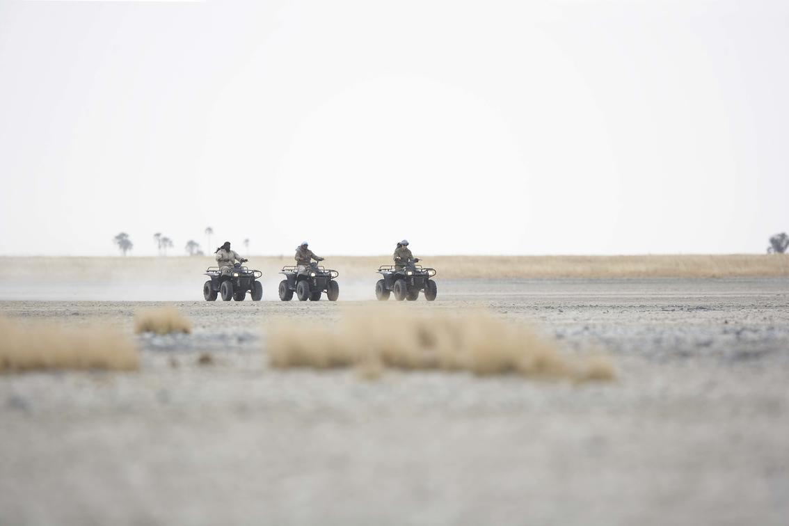 During the dry season, quad bike across Ntwetwe and the lunar expanse of the Makgadikgadi Pans.