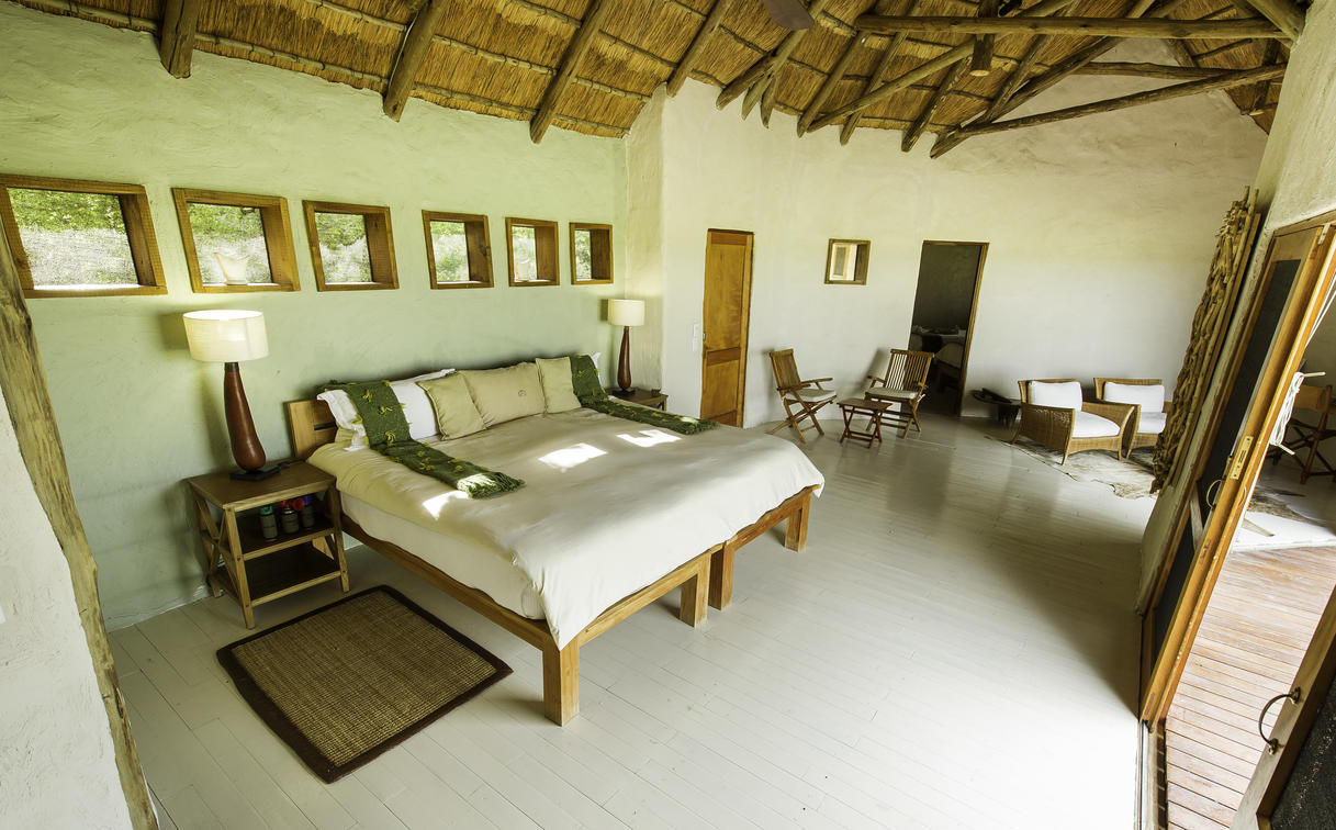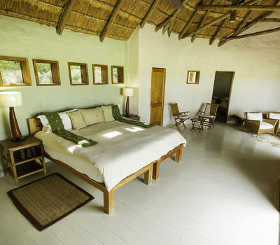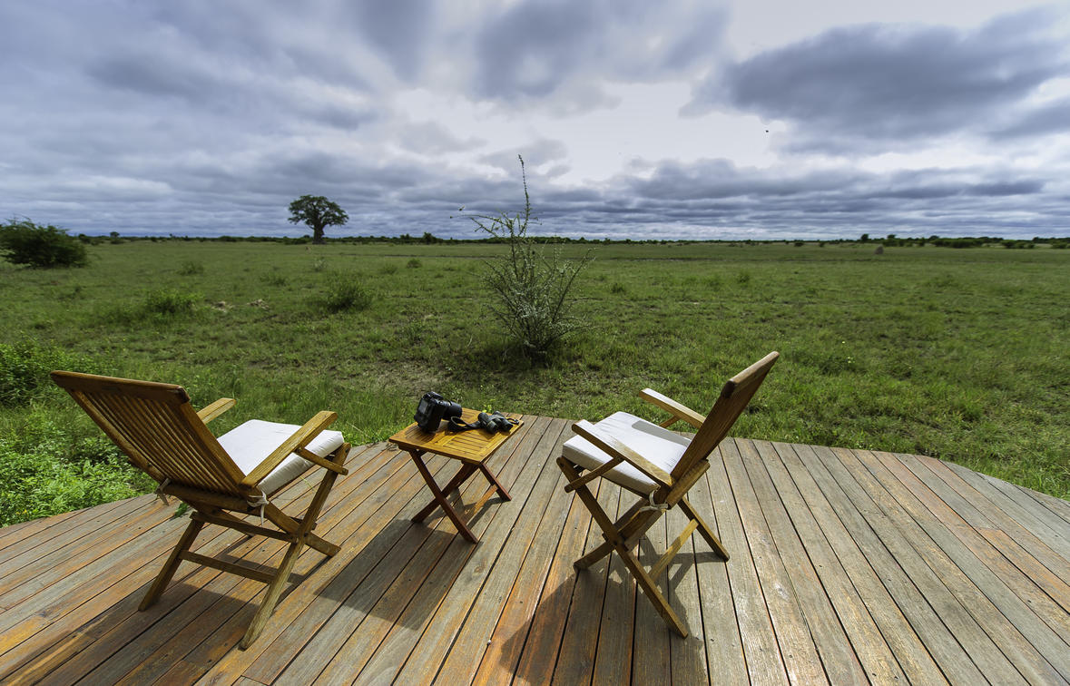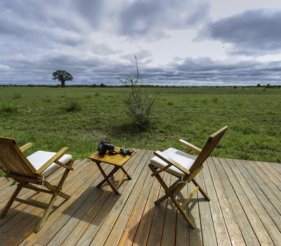 The rooms include double wash basins and both indoor and outdoor showers. The rooms are spacious with lounge area and one includes an additional twin bedroom, ideal for family use. All the units are on raised decks and their location on the edge of the ridge means that each viewing deck has truly special and captivating views of the wide open pan and its big beautiful sky. Each hasan open verandah which looks on to the waterhole in front of the camp, where elephant are frequent visitors.