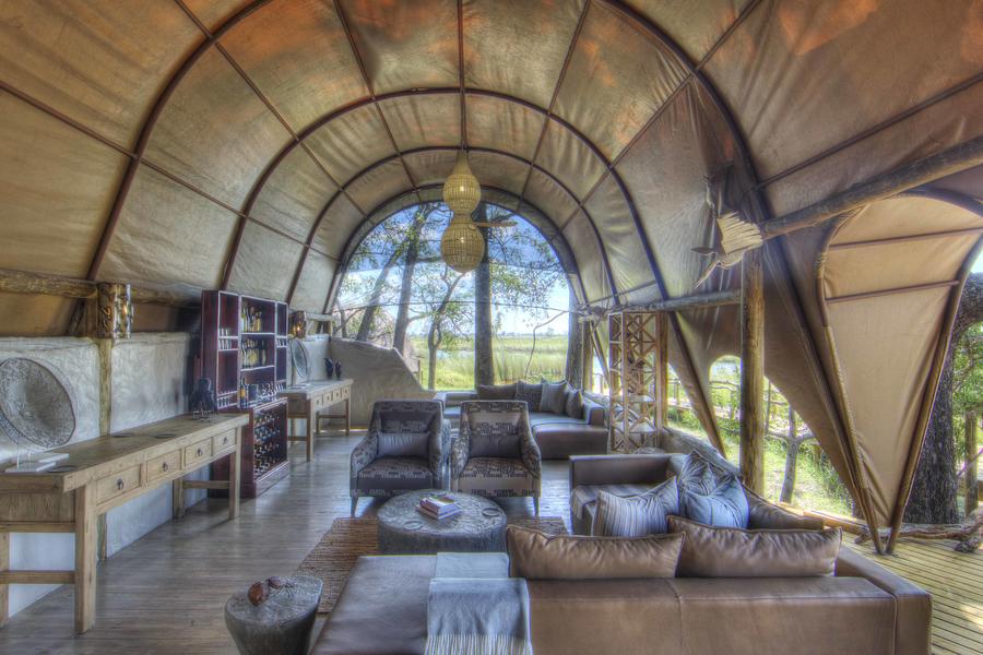 Okuti comprises of five very spacious twin and double-bedded “Masasas” (ancient tribal word for house of reeds), exceptionally unique in style and architecture all rooms overlook the permanent Maunachira channel. An additional two family “Masasas” consist of two bedrooms which share spacious bathroom facilities – ideal for families in this child friendly camp. Each en-suite bathroom provides both an indoor and outdoor shower. Connected by raised wooden walkways all areas of camp are wheelchair accessible.