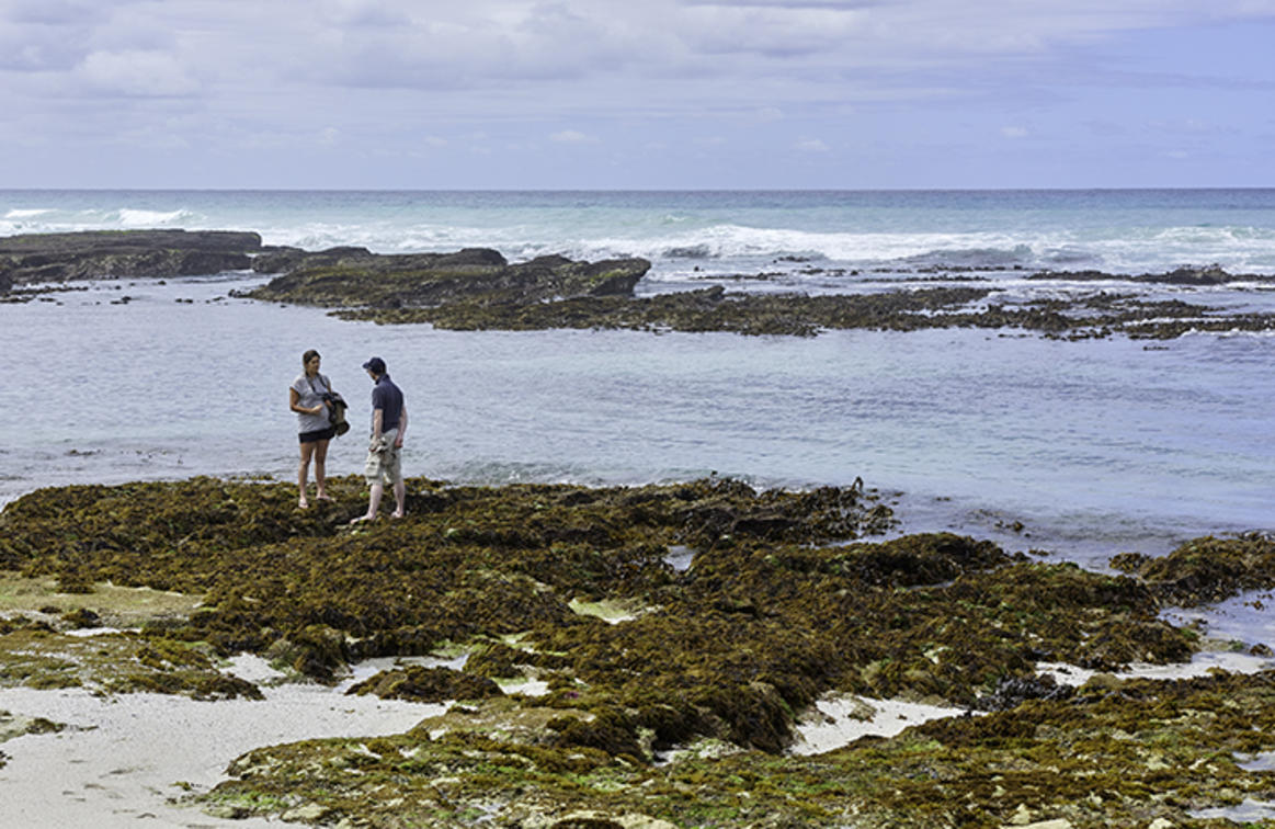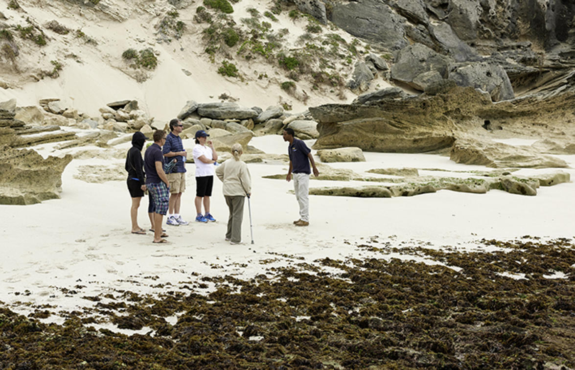 A walking trail exploring coastal rock pools and sandy beaches while a qualified guide points out interesting marine life forms. Also a great way to experience the Southern Right Whales in the bay between June and December. Depart an hour before low tide from the meeting tree. Times of daily low tide should be confirmed with reception.
