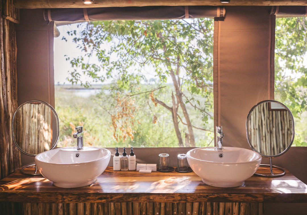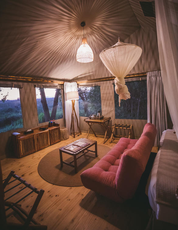 The camp accommodates 24 guests in canvas Meru-style safari tents on raised decks. The spacious and tastefully furnished luxury tents have either twin or double beds and ensuite showers.