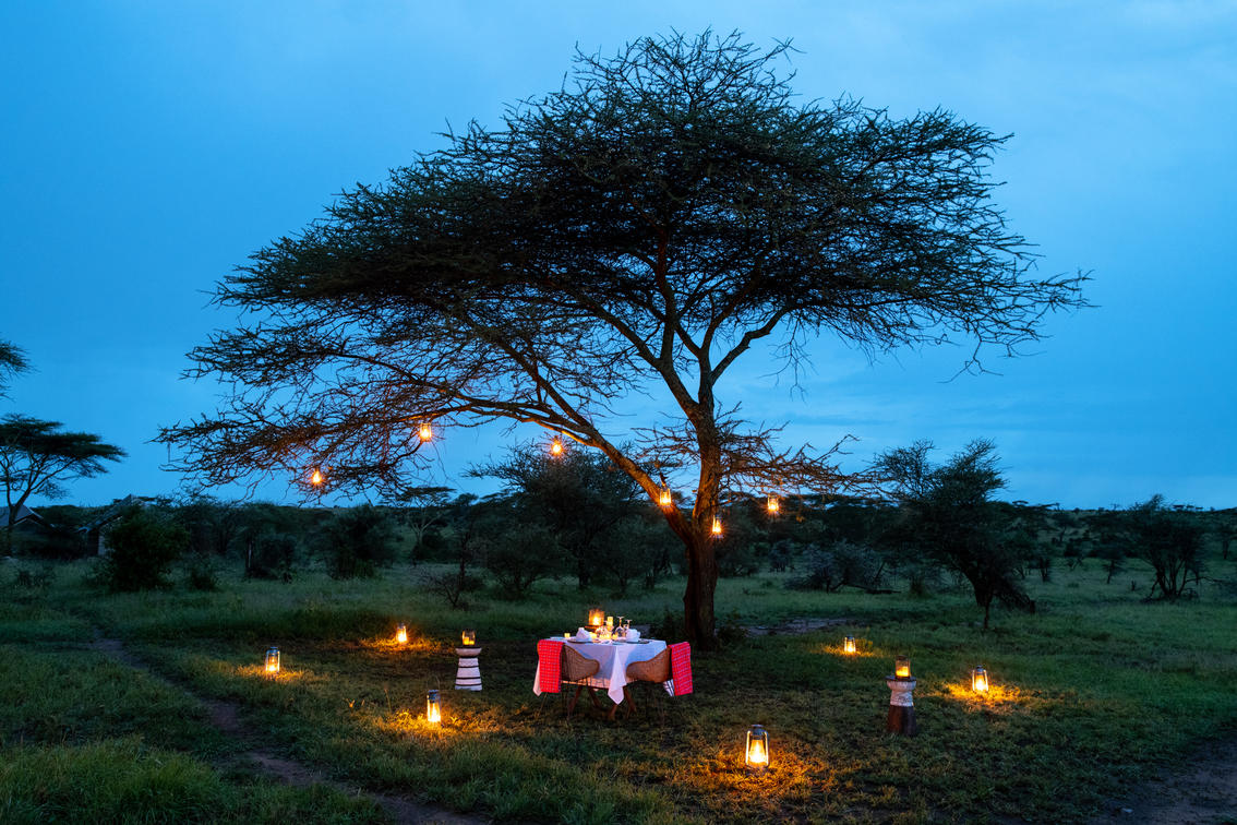 No safari is complete without experiencing a traditional outdoor, open-air lunch or dinner. Relax under the natural canopy of an acacia tree, while your personal butler serves up a feast. Nothing is quite so essentially safari as this. White linen, fine bone china and crystal glassware create a real "Out of Africa" experience - both daytime and night.