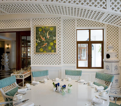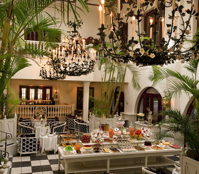 Inspired by The Oyster Box’s original, colonial architecture with four magnificent tole and ceramic chandeliers purchased from the Savoy Hotel in London, natural sunlight and towering Palms, The Palm Court is the venue for the legendary High Tea each afternoon. It’s also a favourite meeting spot for casual dining and the ideal place to enjoy the Evening Indulgence treat.