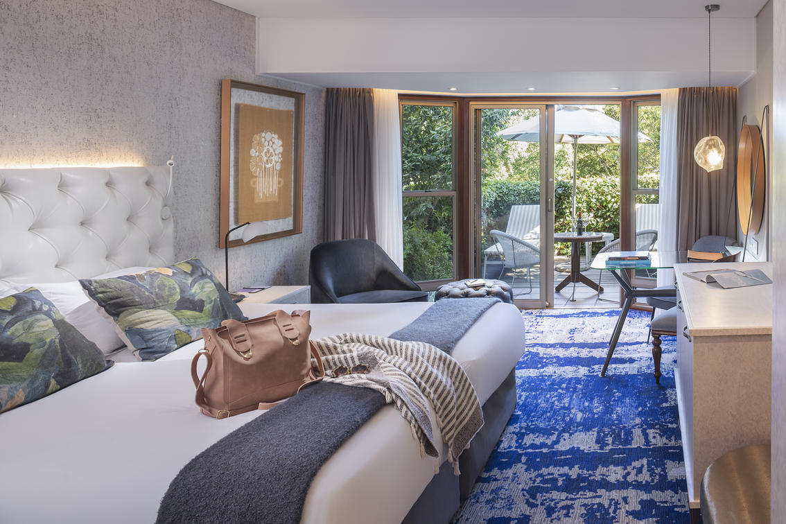 At the north end of the estate, Garden Junior Suites are restfully styled spaces with deluxe bathrooms with separate showers and baths. The bedrooms step down to cosy lounge areas and private garden patios. Each Junior Suite is equipped with a flatscreen, a queen bed, a hairdryer, a wall safe, Nespresso Coffee Machine and DVD player.
