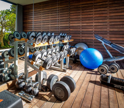 Small, well-equipped fitness centre with it’s own sauna and change rooms is located beneath the main house for those who want to maintain a workout regime while travelling. There is also an outdoor, heated lap pool tucked away on a private terrace. Up-to-date apparatus set the scene for an invigorating workout with a view. Equipment includes free weights and a bench, treadmill, stationary bicycle, full-body toning machine, stability balls, weighted medicine balls and exercise mats.