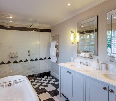 An average size of 32m²/344ft², two of these four comfortable and spacious rooms have full bathrooms; the other two have large walk-in showers.