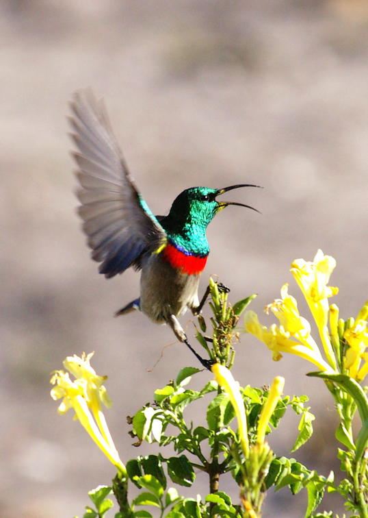The beaks of the conspicuous endemic Orange-breasted Sunbird and the Southern Double-collared Sunbird are tailor-made for sipping the sweet stuff from the floral tubes of the various Erica species. You cannot miss the male Cape Sugarbird, with its ridiculously long tail (almost 70% of its total length), feeding on the nectar of Protea species. The impressive tail is solely a decorative testimony to manhood - the longer, the better! They whip their tails to attract females and ward off rivals.