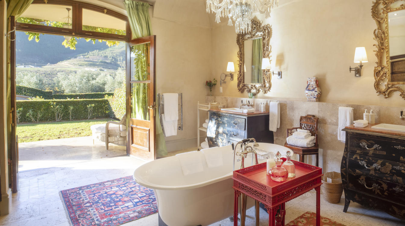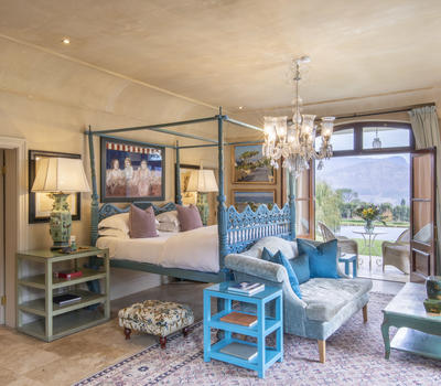 With 100 square meters of opulence, these suites are as elegant as they are large. Each individually designed by Liz Biden, their interiors boast a variety of exciting ornaments and furnishings, setting the scene for an unforgettable vacation in the Cape Winelands.