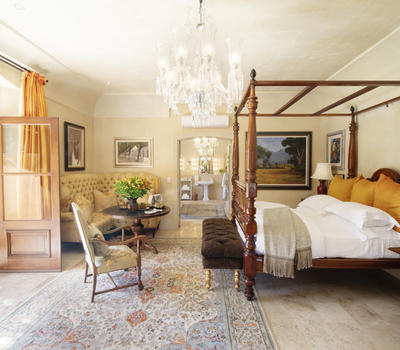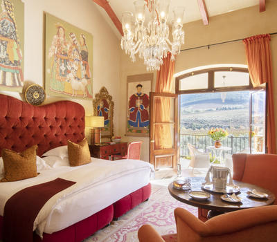 The entry-level suites offer a spacious 90 square meters of majestic, eclectically decorated floor space, an en suite bathroom, and private balconies with beautiful views of the surrounding estate.
