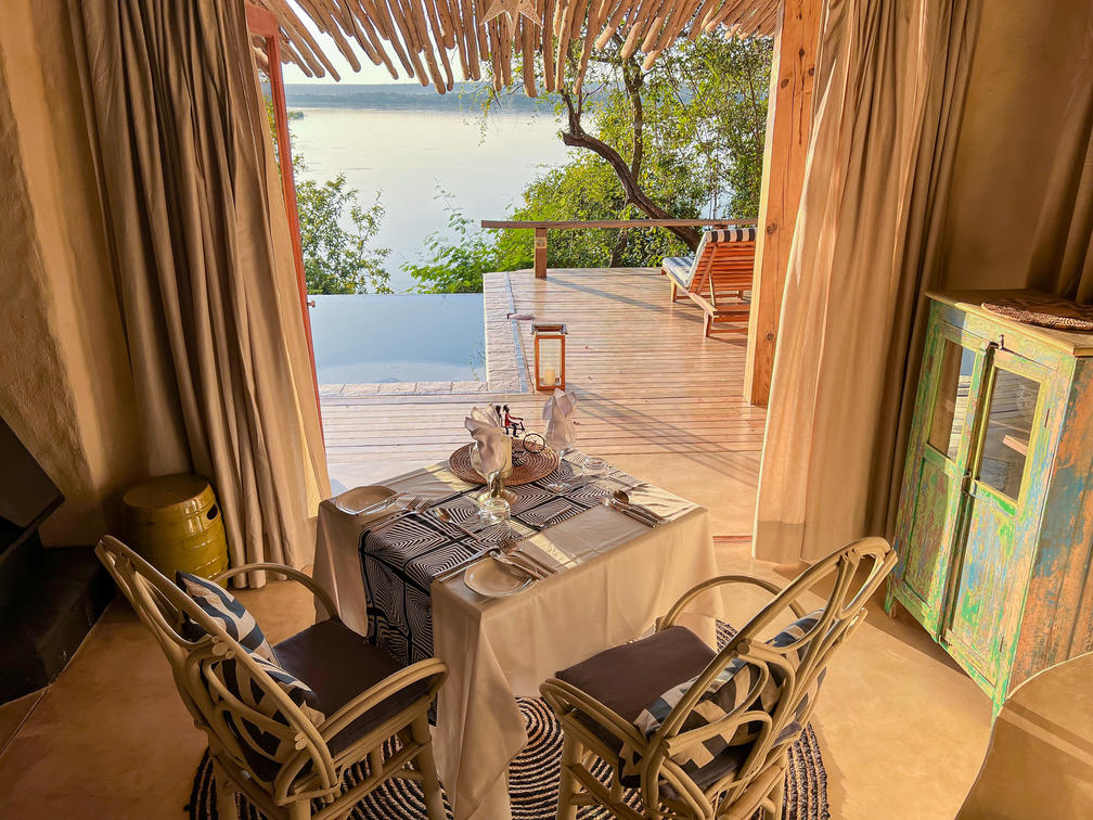 The Dog House personifies the Tonga ethos of exclusivity, romance and luxury with a twist of quirkiness. Located at the very end of the elevated garden path, this private haven sits on three large wooden decks over the Zambezi river. Recently extensively refurbished, the house remains magnificently proportioned and now has two beautiful bedrooms to accommodate small groups and families. The sprawling space includes a central designated chill zone with an infinity pool, extended deck, large lounge and cozy dining room. Whether you manage to venture out to enjoy the inclusive activities, dabble in serious adventure – or simply elect to order the massages in - the brand new Dog House is so much more than a beautiful, African Fusion style accommodation choice... it is the experience of a life time.