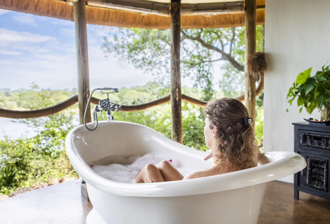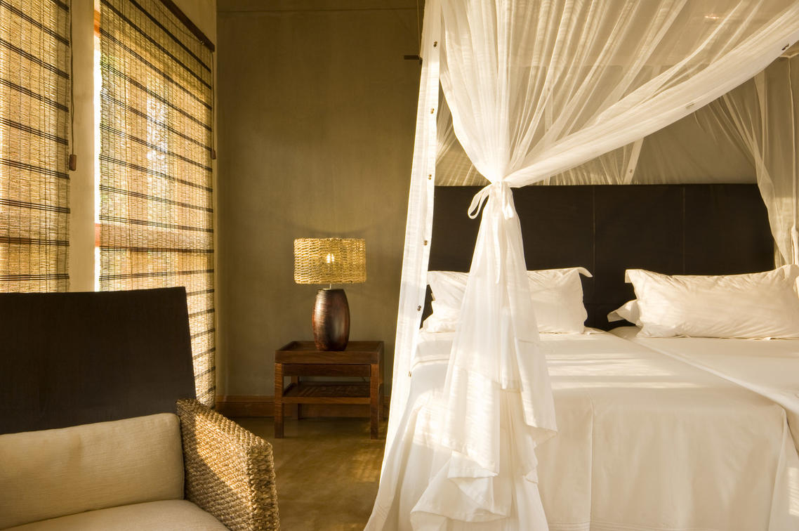 The large beds are covered with a stylish mosquito net and all rooms are air-conditioned.