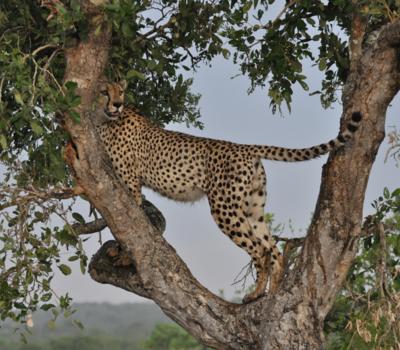 Rhino Post Safari Lodge - Cheetah in tree