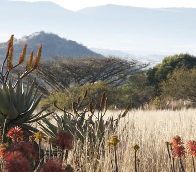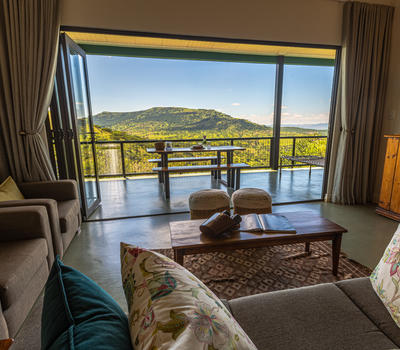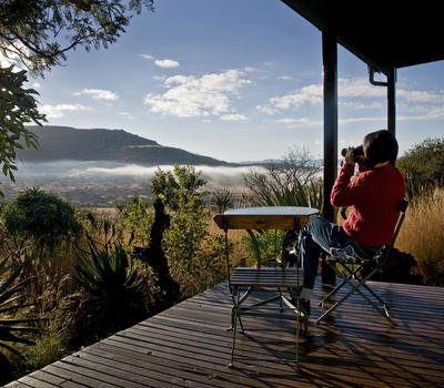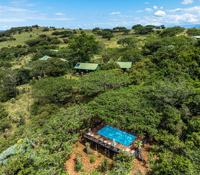 Burchells Cottage with its own private pool looks north east towards Spioenkop and the Game Reserve