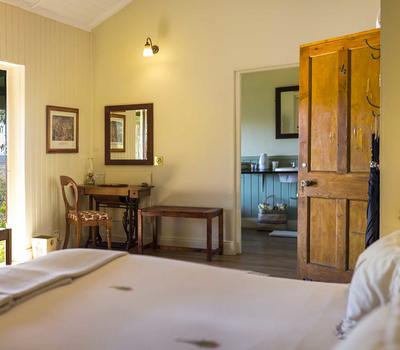 Burchells Cottage has central lounge and dining area separating the rooms.