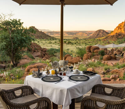 Chiwani Safari Camps' Mowani Mountain Camp Firepit and Dining Area