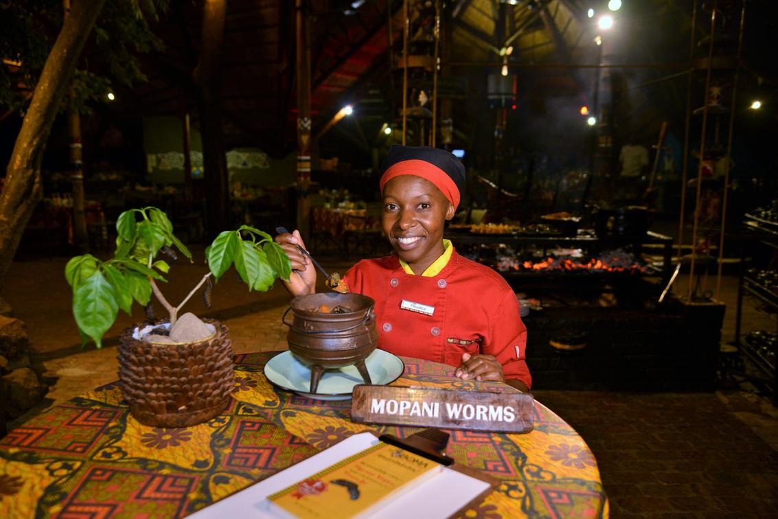 Guests enjoying Mopani worms