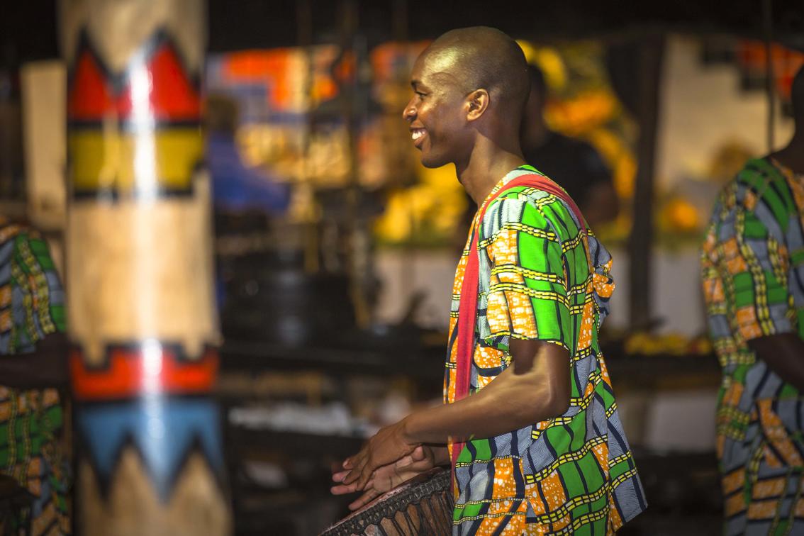 A guest enjoying the interactive drumming at the Boma - Dinner and Drum Show