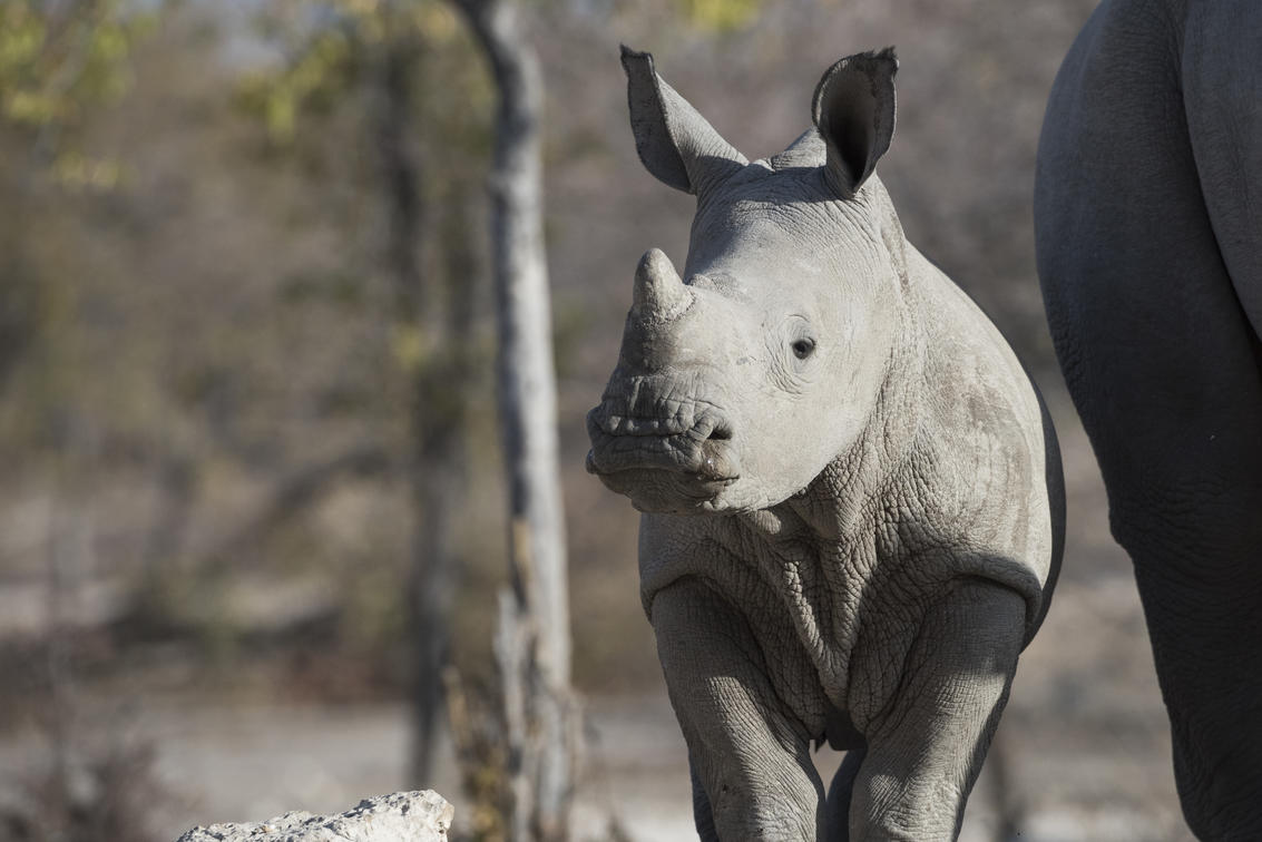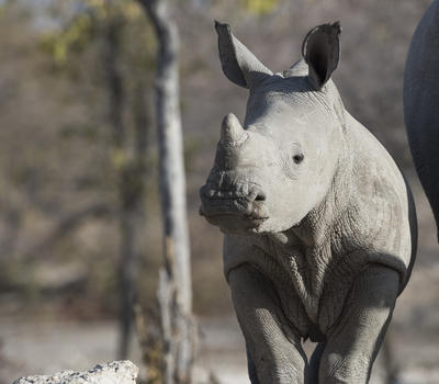 Black rhino at camp waterhole