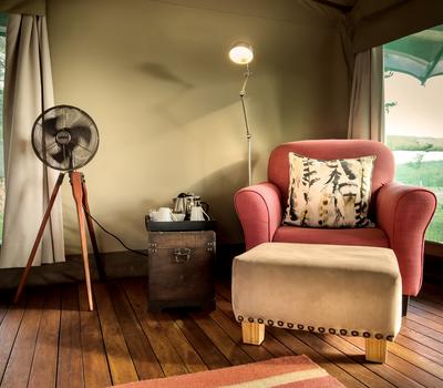 Tea and coffee station in tent powered by 220V renewable solar energy
