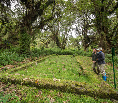 The trail to Dian Fossey's tomb takes trekkers through impressive rainforest vegetation.
