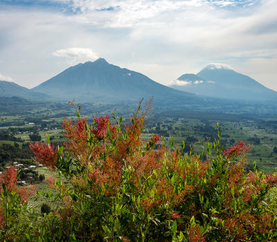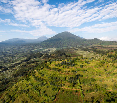 Wilderness Bisate looks over to Mount Bisoke, one of the active volcanoes in the Virunga Mountains.