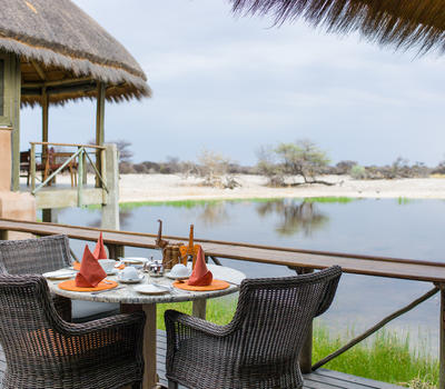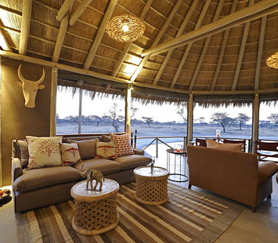 The lounge - a perfect place to relax and view the waterhole at Onguma Bush Camp
