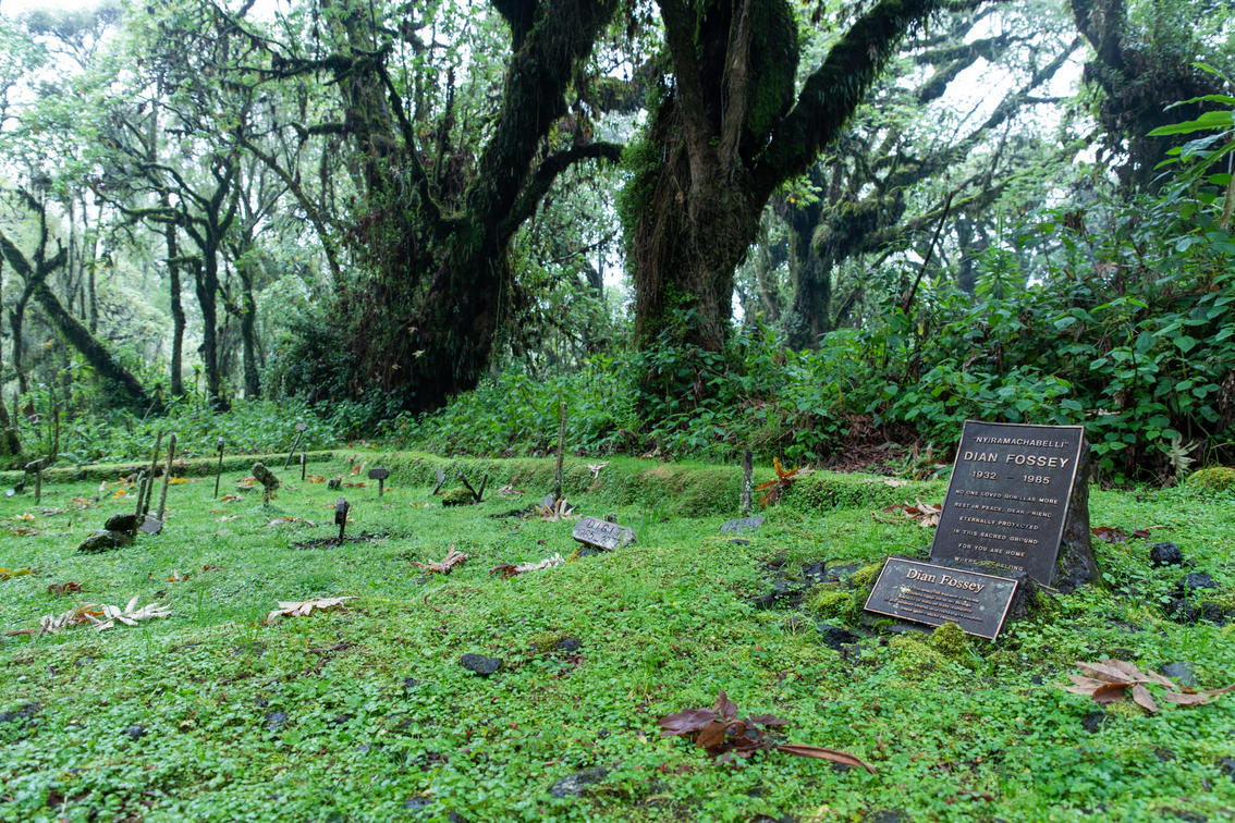 La visita al campo de investigación de Dian Fossey, en Karisoke, y a su tumba es otro de los puntos destacados de Sabyinyo. La caminata comienza en la sede del Parque Nacional de los Volcanes y se encuentra en la zona montañosa entre dos volcanes, el monte Karisimbi y el monte Bisoke (del que se deriva el nombre de Karisoke). El campamento se encuentra a una altitud de 3 000 metros (más de 9 000 pies) y fue abandonado durante los disturbios de la década de 1990. Lo único que queda hoy es la tumba de Dian Fossey y varias tumbas de sus adorados gorilas, enterradas junto a ella. Un momento conmovedor y preciado para todos los que lo visitan.