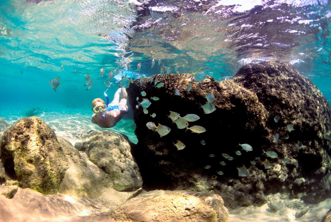 La plongée avec tuba guidée tous les jours se fait à 5 minutes à pied du Lodge à marée basse dans nos belles piscines de roche. La plongée avec tuba guidée est incluse dans le tarif.