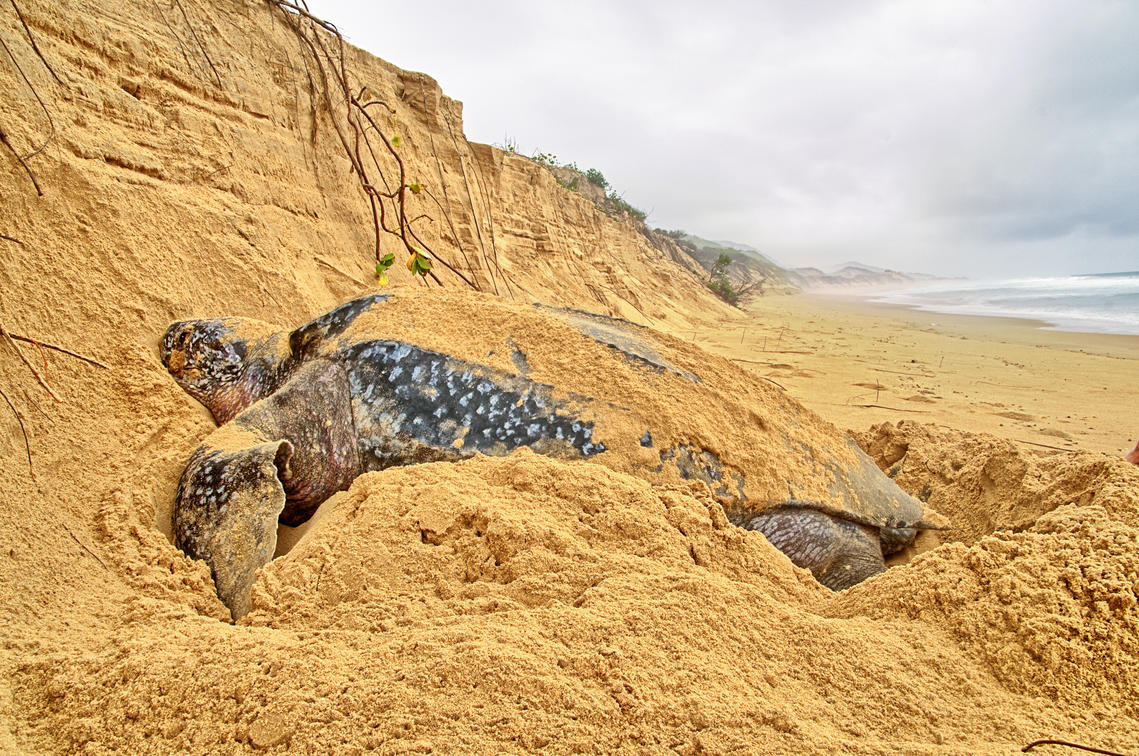 En été, il y a des promenades nocturnes et des promenades le long de la plage à la recherche de tortues préhistoriques pondant leurs œufs. Découvrez l'aboutissement d'un voyage incroyable alors que les tortues luth et les tortues caougères géantes débarquent à terre pour pondre leurs œufs dans des nids soigneusement préparés.