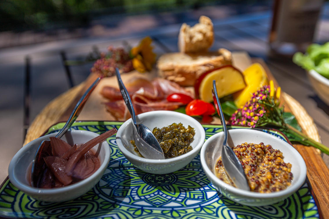 Les déjeuners sont légers : salades, pain maison, fromages artisanaux, chutneys faits maison et conserves avec de la charcuterie locale.