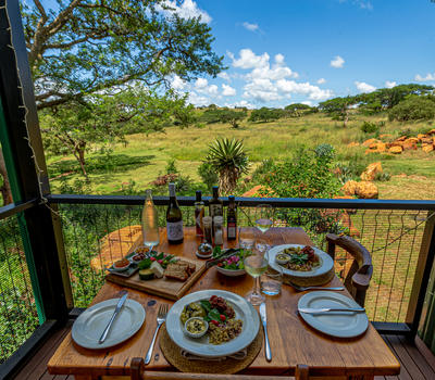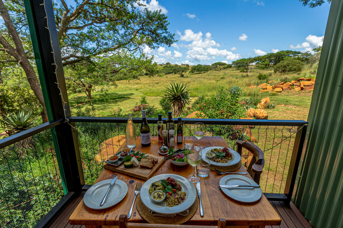 Les dîners sont un menu fixe avec 3 plats de style fermier accueillants suivis de porto sud-africain ou de cognac devant la cheminée ou à la belle étoile autour du feu de boma. Le menu du dîner est affiché pendant le thé de l'après-midi, avec un seul choix pour chaque plat, alors veuillez nous faire savoir si ce choix ne vous convient pas, afin que nous ayons le temps de préparer une alternative.
