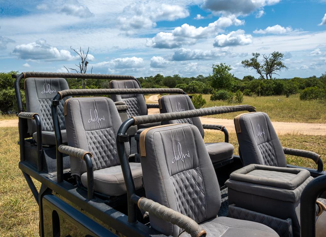 Tutti i veicoli Safari di Dulini sono dotati di supporti per fotocamere e pouf per la fotografia, binocoli di alta qualità per ogni coppia, coperte, poncho foderati in pile e hanno la possibilità di montare un tetto se necessario.