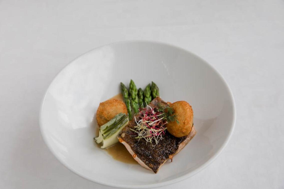 Le opzioni principali vegetariane includono Halloumi fritto con crocchette di cipolle primaverili e risotto ai funghi selvatici (vegano) mentre le opzioni pescetarie includono trote locali con asparagi, e pesce della linea sostenibile, indivie di coriandolo con burro di vaniglia, mais dolce, lime e uva. Chef Jason è un grande sostenitore del naso alla coda mangiare e applica questo principio anche alle verdure. Niente in cucina e' sprecato. La pelle e gli scarti della trota sono usati nei fishcakes, ad esempio.