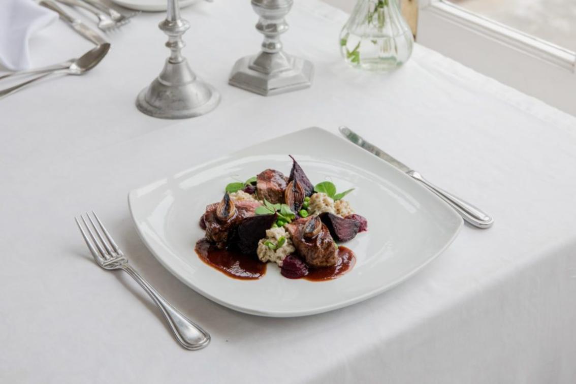 Non tralascieremo mai gli amanti della carne, però. Il nostro filetto di manzo con formaggio di capra orzo, barbabietola, piselli e uno Shiraz Jus abbinato a un bicchiere di Joubert Tradouw Syrah è vero adempimento su un piatto.