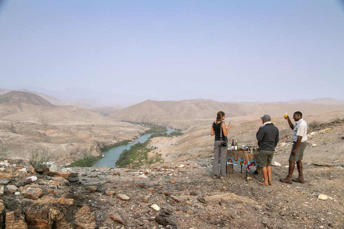 Nijlkrokodil komen voor in dit gebied van de Kunene en worden vaak gezien bij Serra Cafema