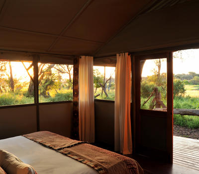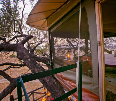 Tom's Little Hide har plass til opptil 6 voksne i tre vakre, safari-elegante rom med utsikt over vannhullet. Det tredje rommet er et telt rom med en inter-ledende passasje til et barnerom. Tom's Little Hide er ideelt for maksimalt 10 personer, inkludert barn (barn i alle aldre er velkomne). Skulle det være mer enn 6 voksne, kan The Hide ved siden av Telt 10 og/eller Telt 9 brukes som ekstra innkvartering.