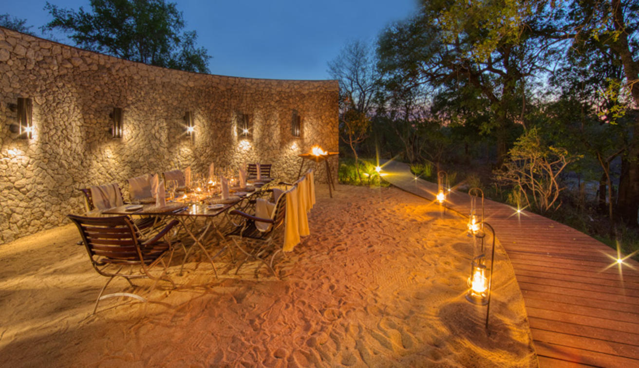 Posiłki są ustawiane w wielu różnych miejscach wokół obozu, w buszu, boma i korycie rzeki.