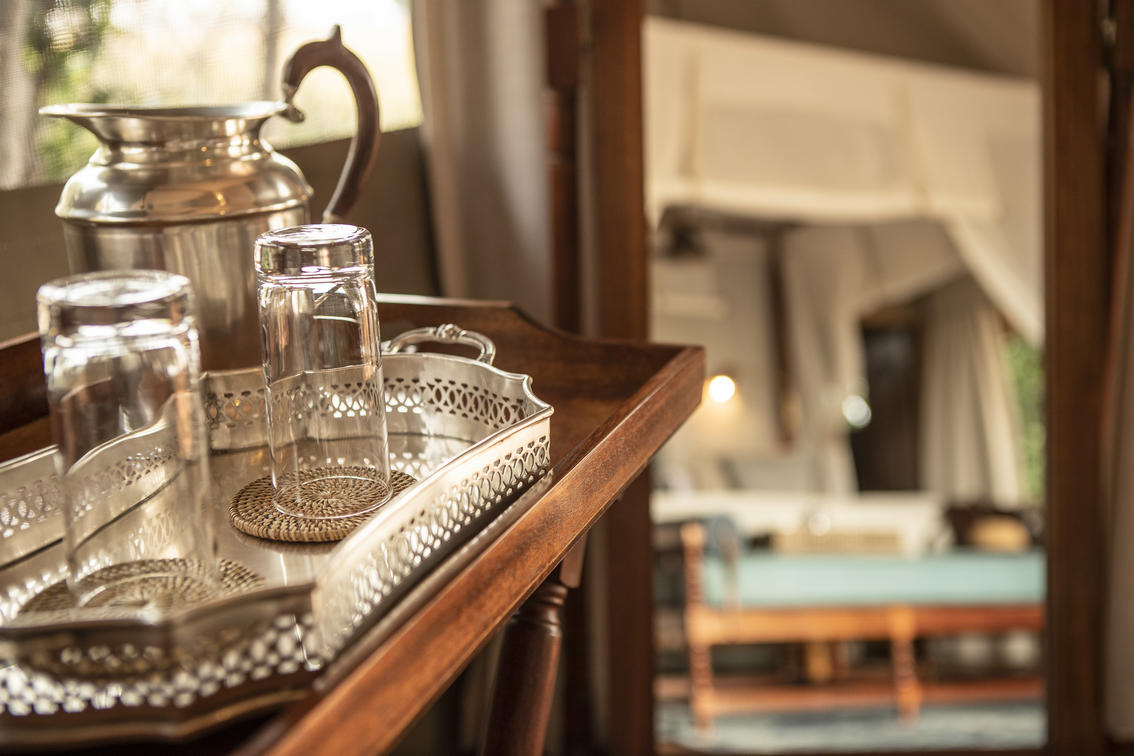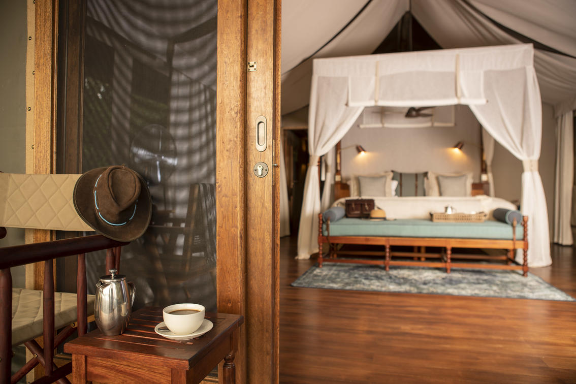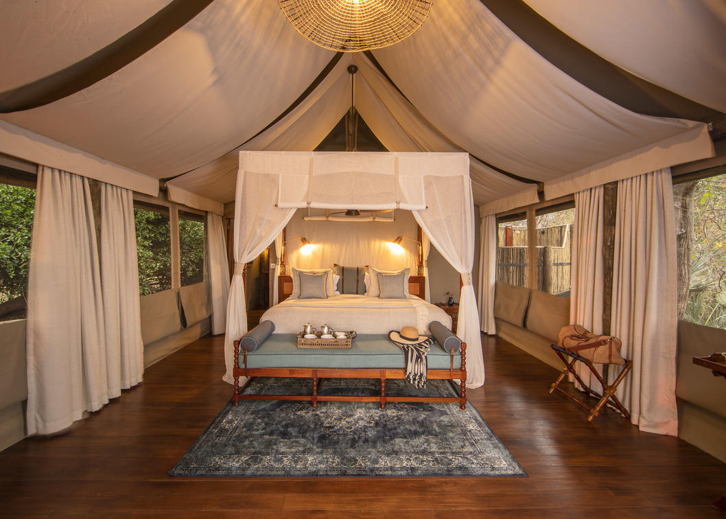 Goscie zakwaterowani sa w przestronnym namiocie safari skladajacym sie z 2 sypialni, wspólnej lazienki z prysznicem wewnatrz i na zewnatrz, cieplej i zimnej wody biezacej oraz splukiwanej toalety. Namioty sa dobrze rozmieszczone, zapewniajac prywatnosc, pozostajac w niewielkiej odleglosci od glównego obszaru obozu. Wystarczajaco pojemny, aby spac maksymalnie 5 osób. Shinde zabiera dzieci w wieku od 7 lat.